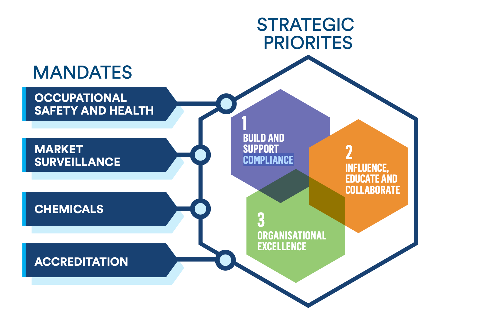 To regulate, enforce, and promote work-related safety, health, and welfare, and the safe use of chemicals and products; and to provide the national accreditation service.